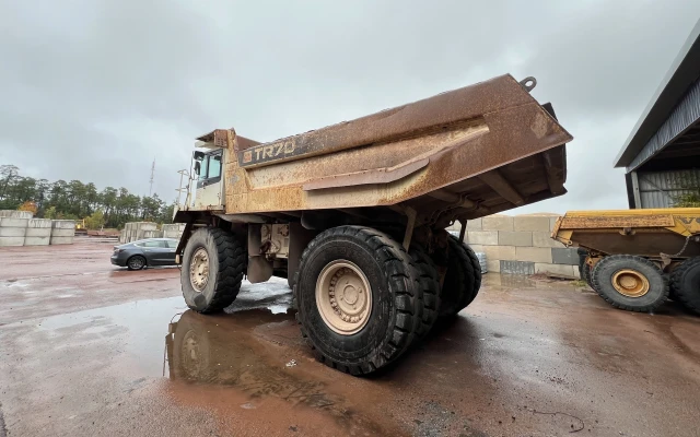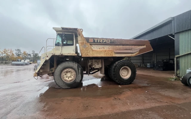 Denna maskin är idealisk för tunga transporter i gruvor och stenbrott, och är känd för sin höga prestanda och låga driftkostnader. Nyrenoverad växellåda.